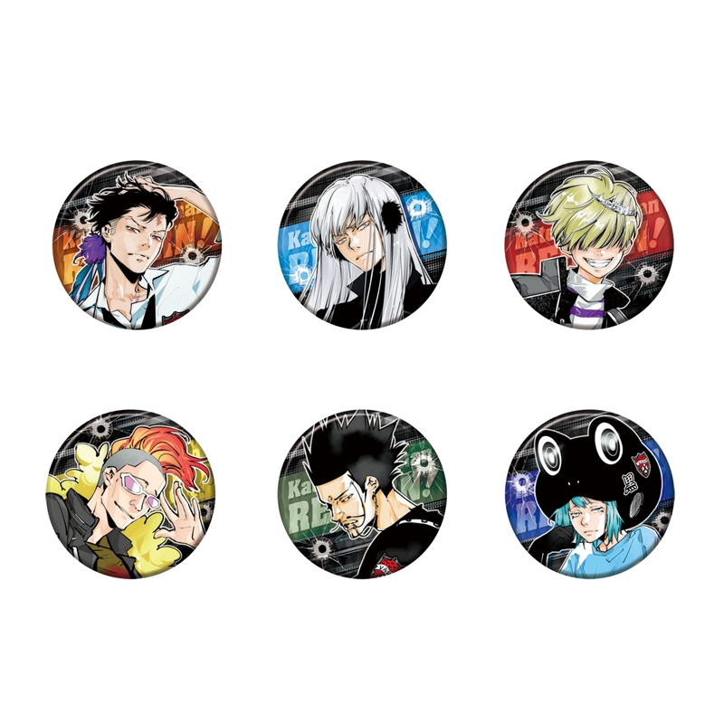 「天野明展」キービジュアルのために描きおろされた『家庭教師ヒットマンREBORN!』のキャラクターイラストを使用した缶バッジ。