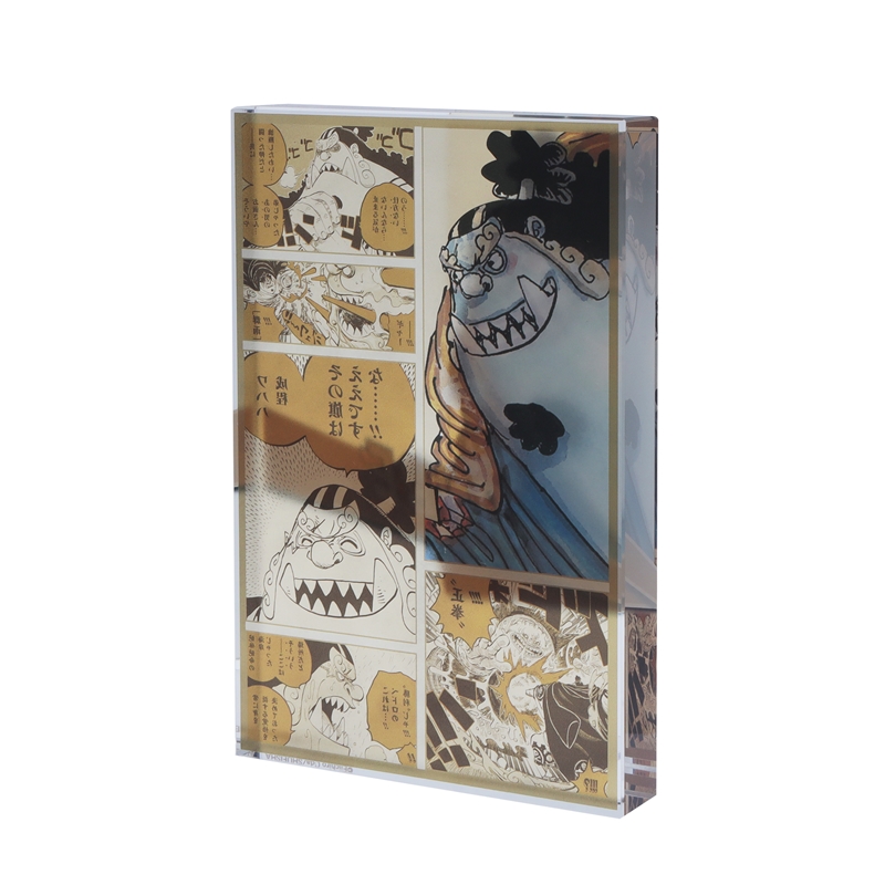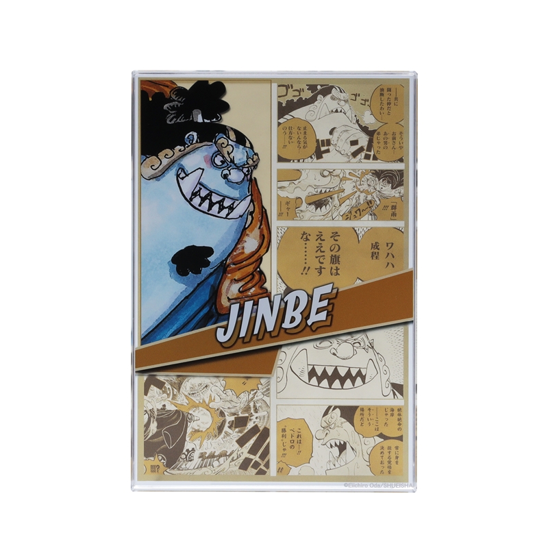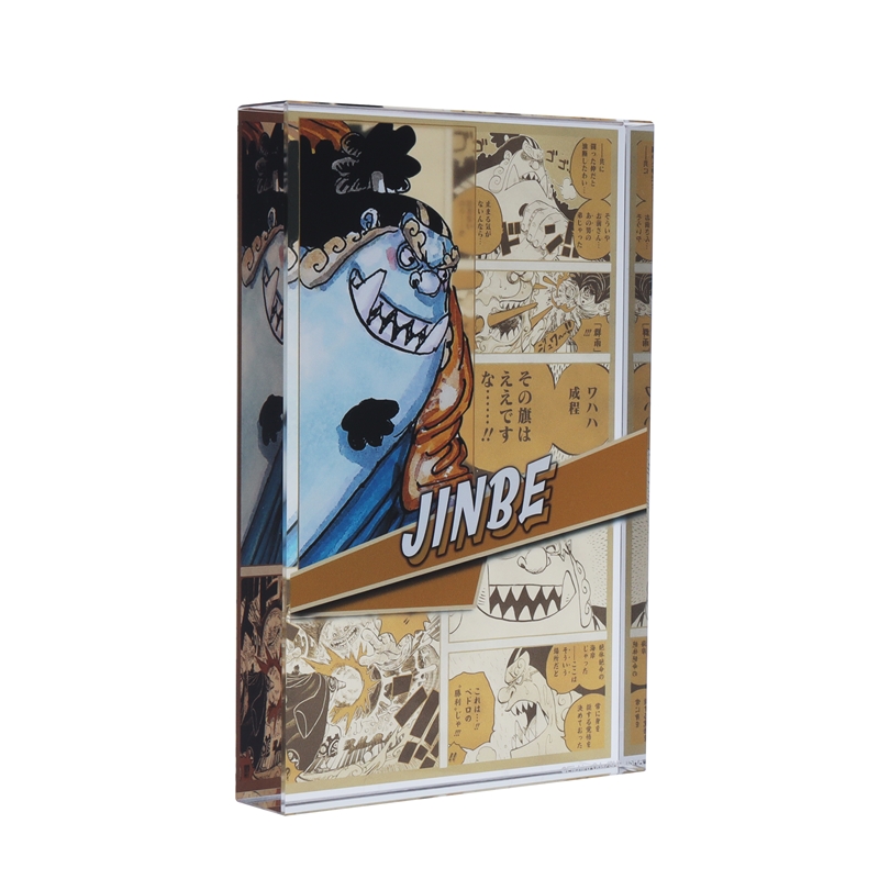 『ONE PIECE』ジンベエのアクリルブロック!厚さ20mmのアクリルは存在感MAX!!ジンベエのかっこいいカラーカットの背面には、名シーンのコマが散りばめられているぞ。インテリアにぴったり!