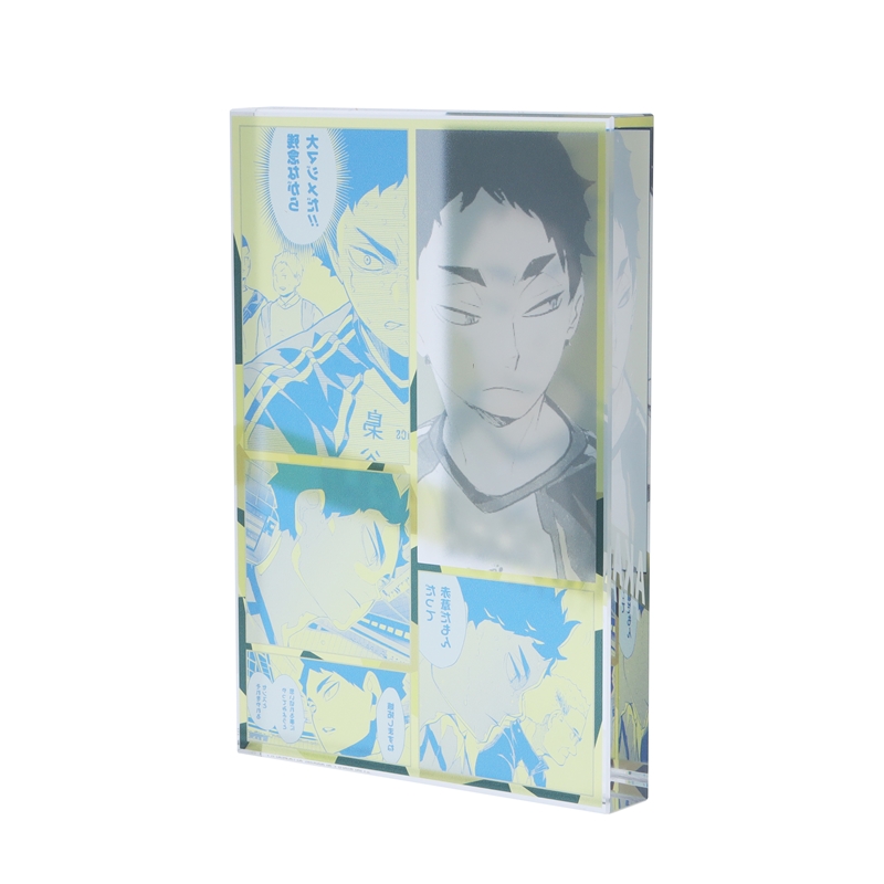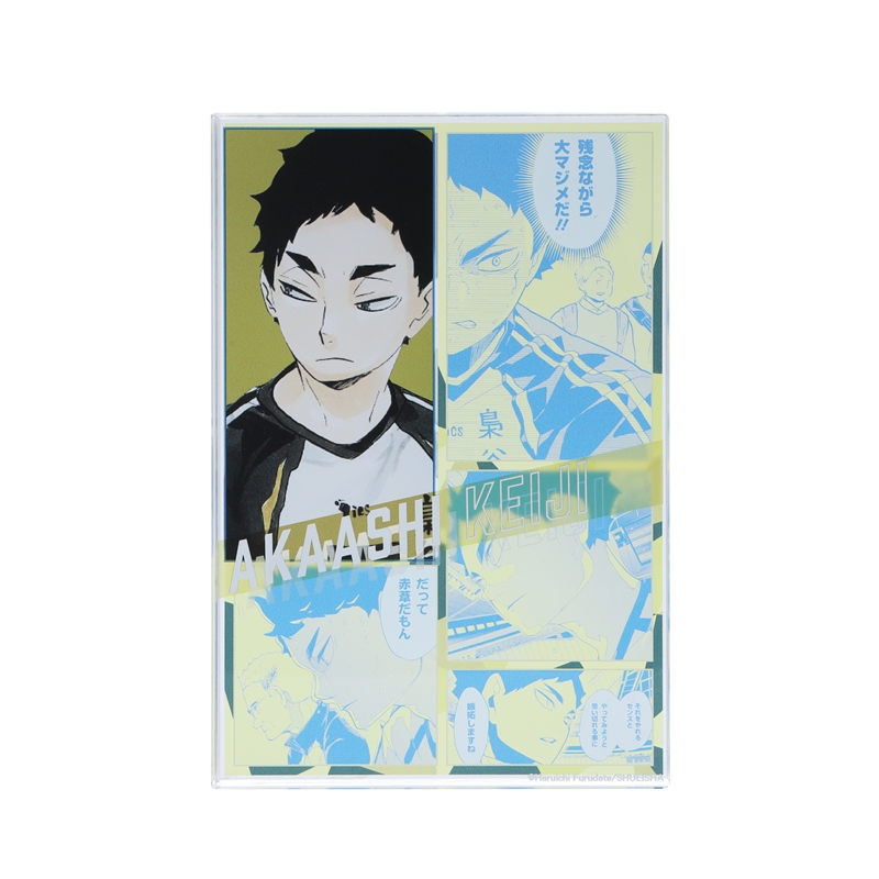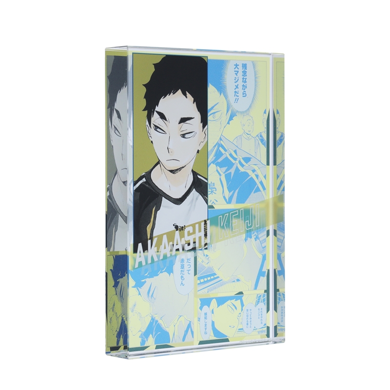 『ハイキュー!!』赤葦京治のアクリルブロック!厚さ20mmのアクリルは存在感MAX!!赤葦京治のかっこいいカラーカットの背面には、名シーンのコマが散りばめられているぞ。インテリアにぴったり!