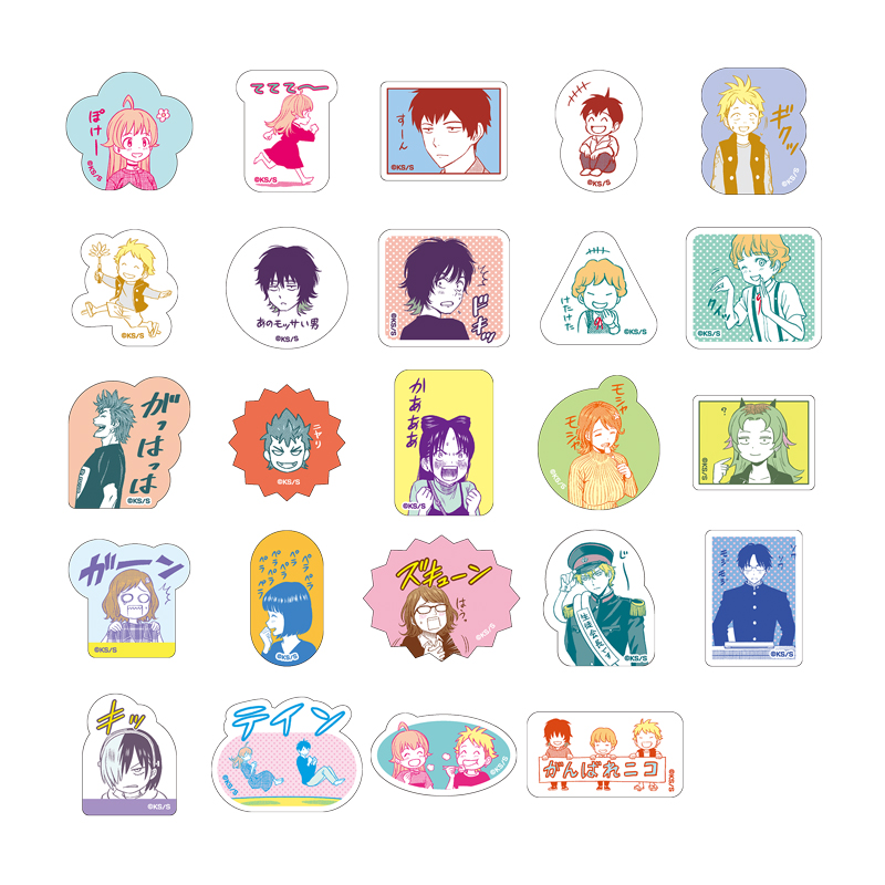 作中のコミカルなシーンを中心にデザインされた小ぶりなフレークシールが登場!